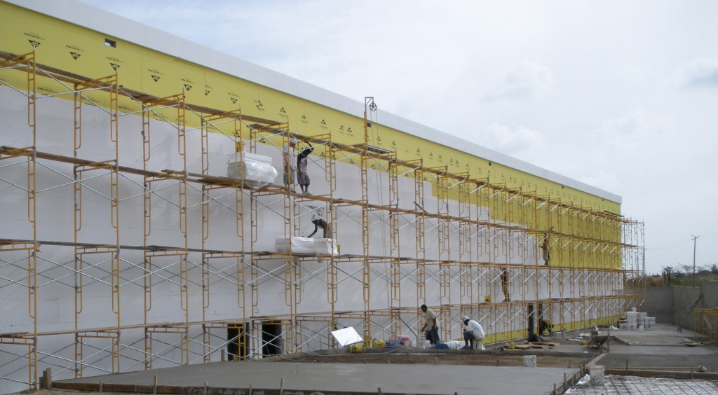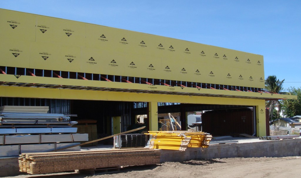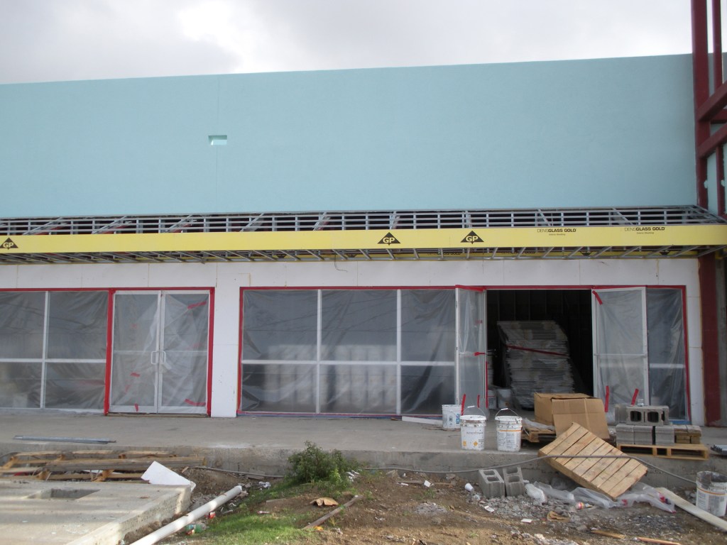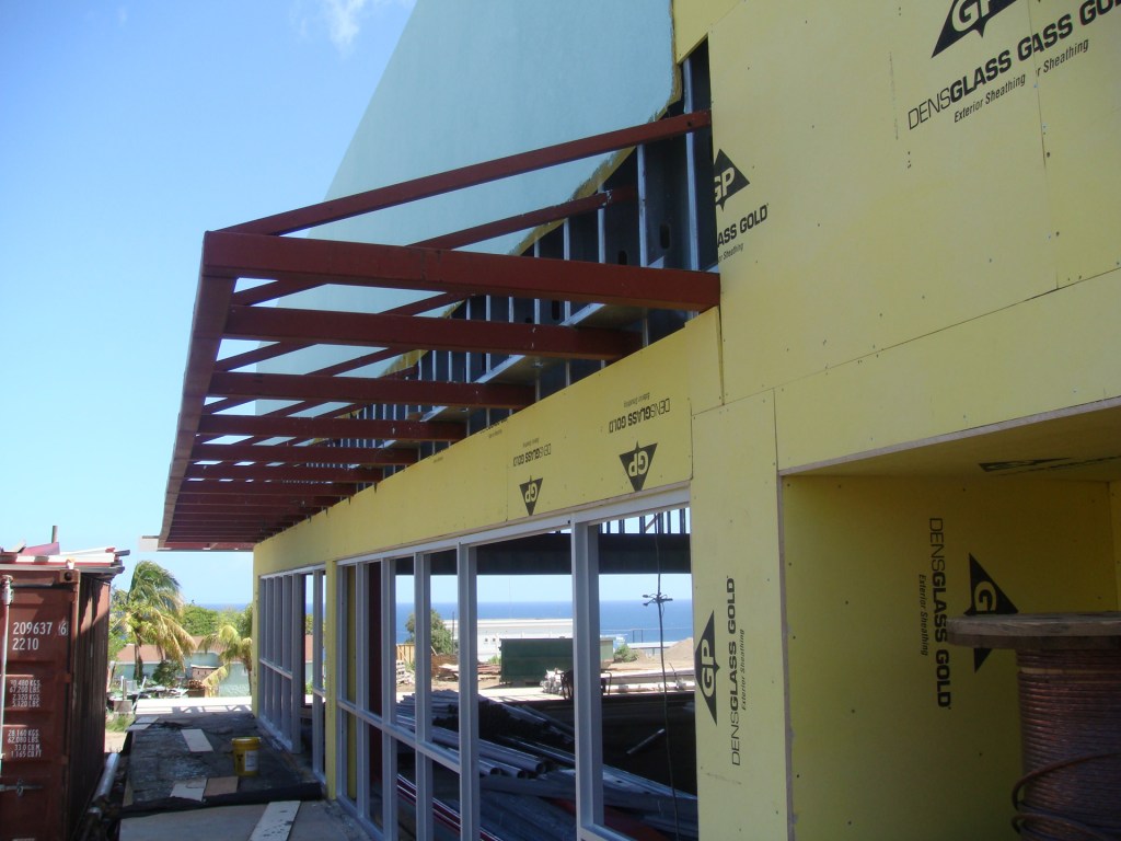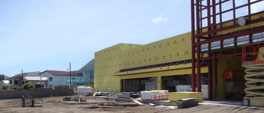 Caribbean Cinemas St. Kitts 7-screen megaplex and mini mall. DWS performed the interior and exterior work, structural suds, sheathing and EIFS. Related